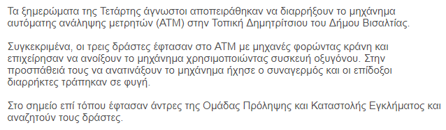 Σέρρες : Νέο χτύπημα σε ΑΤΜ
