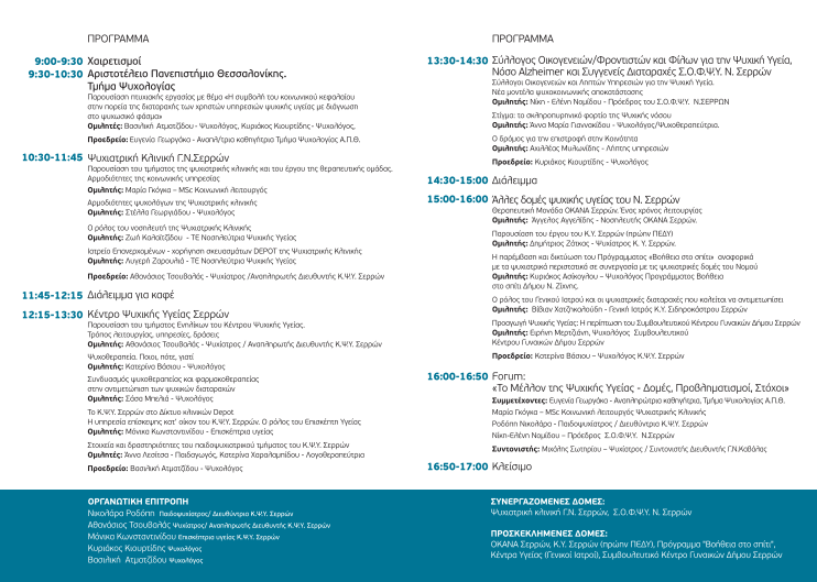 Γενικού Νοσοκομείου Σερρών, σας ενημερώνει ότι το Κέντρο Ψυχικής υγείας Σερρών σε συνεργασία με το Τμήμα