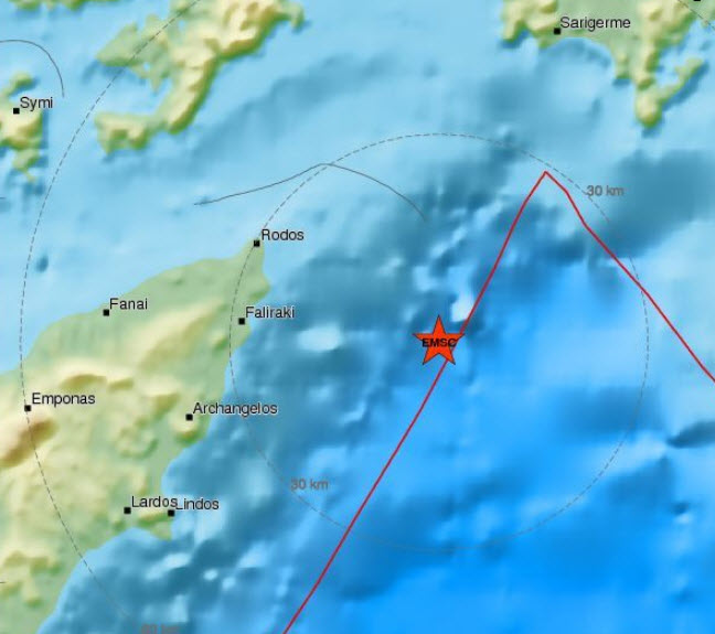 Σεισμός Τώρα: Ισχυρή σεισμική δόνηση μεγέθους 5,1 βαθμών της κλίμακας Ρίχτερ (σύμφωνα με την αναθεωρημένη λύση του Ευρωπαϊκού – Μεσογειακού EMSC), σημειώθηκε το πρωί της Πέμπτης (25/9), στη 07:44, σε υποθαλάσσια περιοχή, κοντά στην πόλη της Ρόδου.